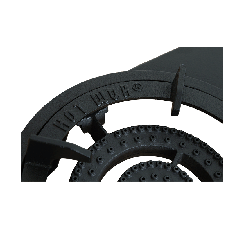 Mit 2 x 10 kW Leistung erhalten Sie insgesamt 20 kW Kochpower, verteilt auf zwei unabhängige Brenner. Die Konstruktion besteht aus massivem Gusseisen mit Komponenten aus Messing und anderen langlebigen Materialien – und mit einem Gesamtgewicht von 18 kg liefert der HOT WOK DOUBLE pure Stärke und langanhaltende Haltbarkeit.