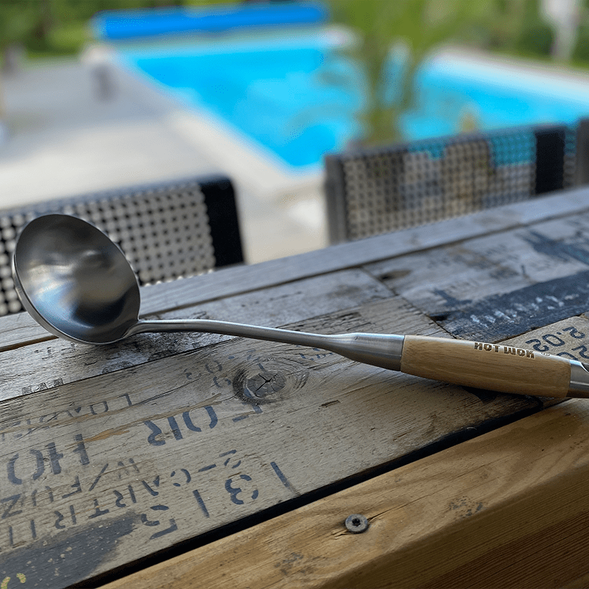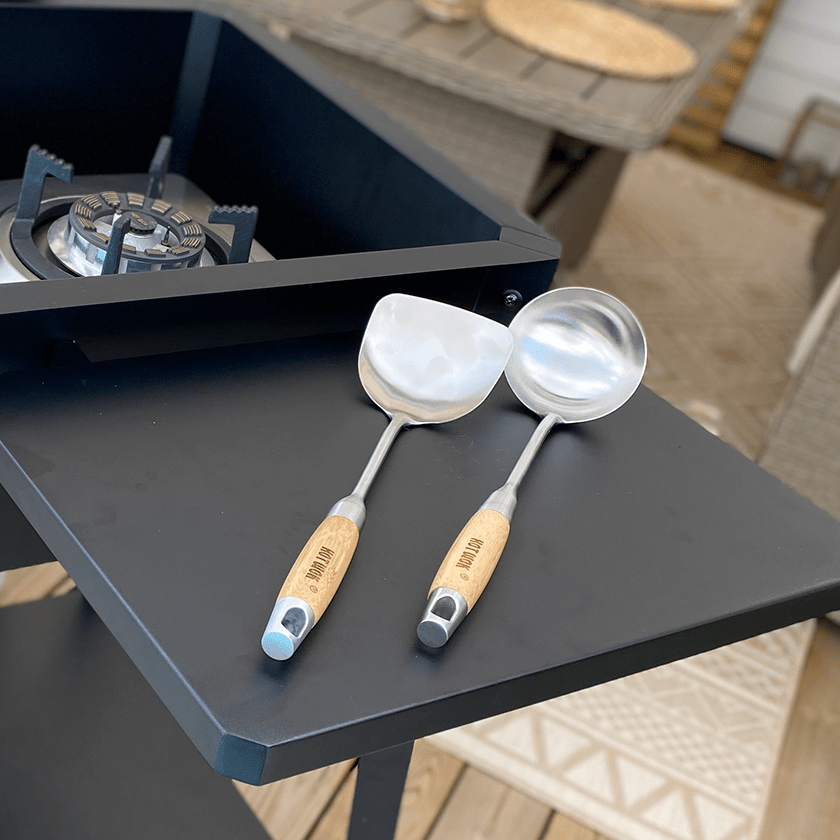 Die HOT WOK Kelle ist das perfekte Werkzeug für alle, die sowohl in der Außen- als auch in der Innenküche Wert auf Qualität und Stil legen.